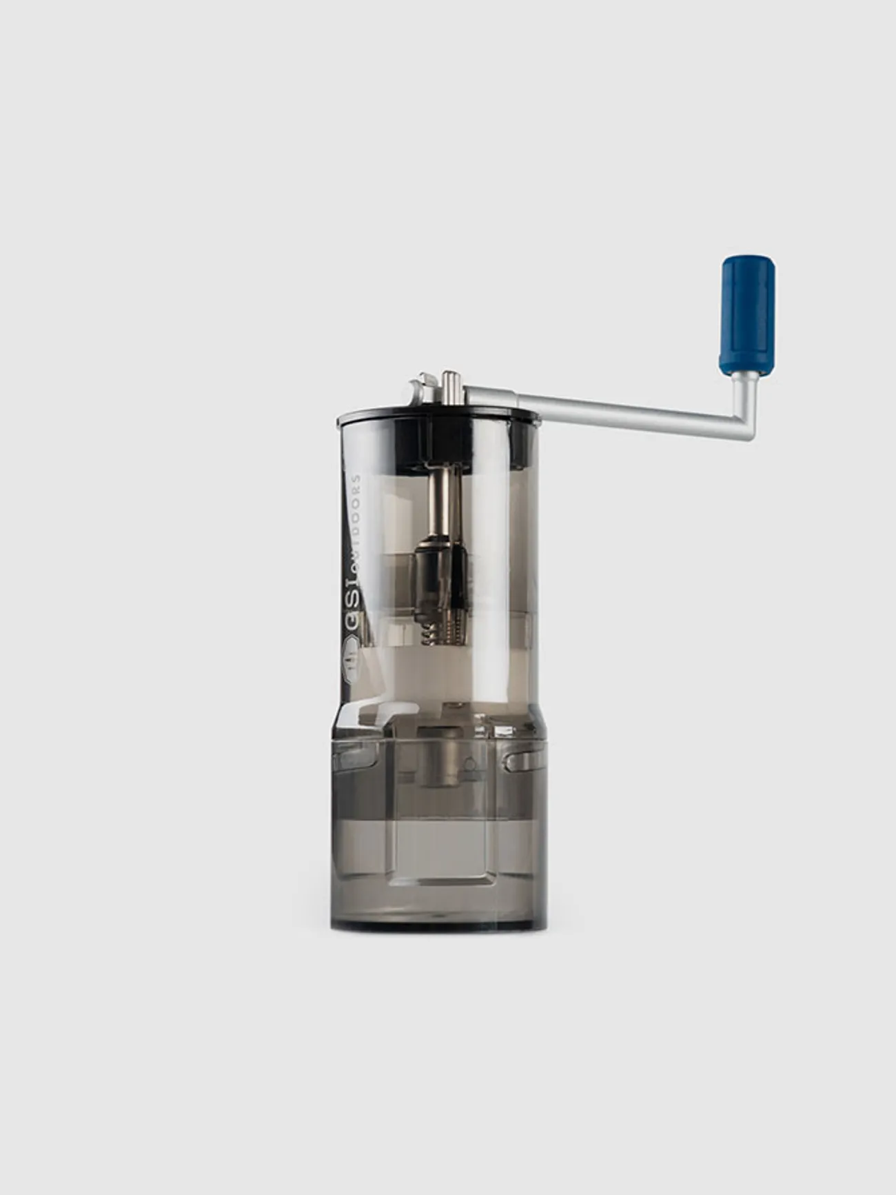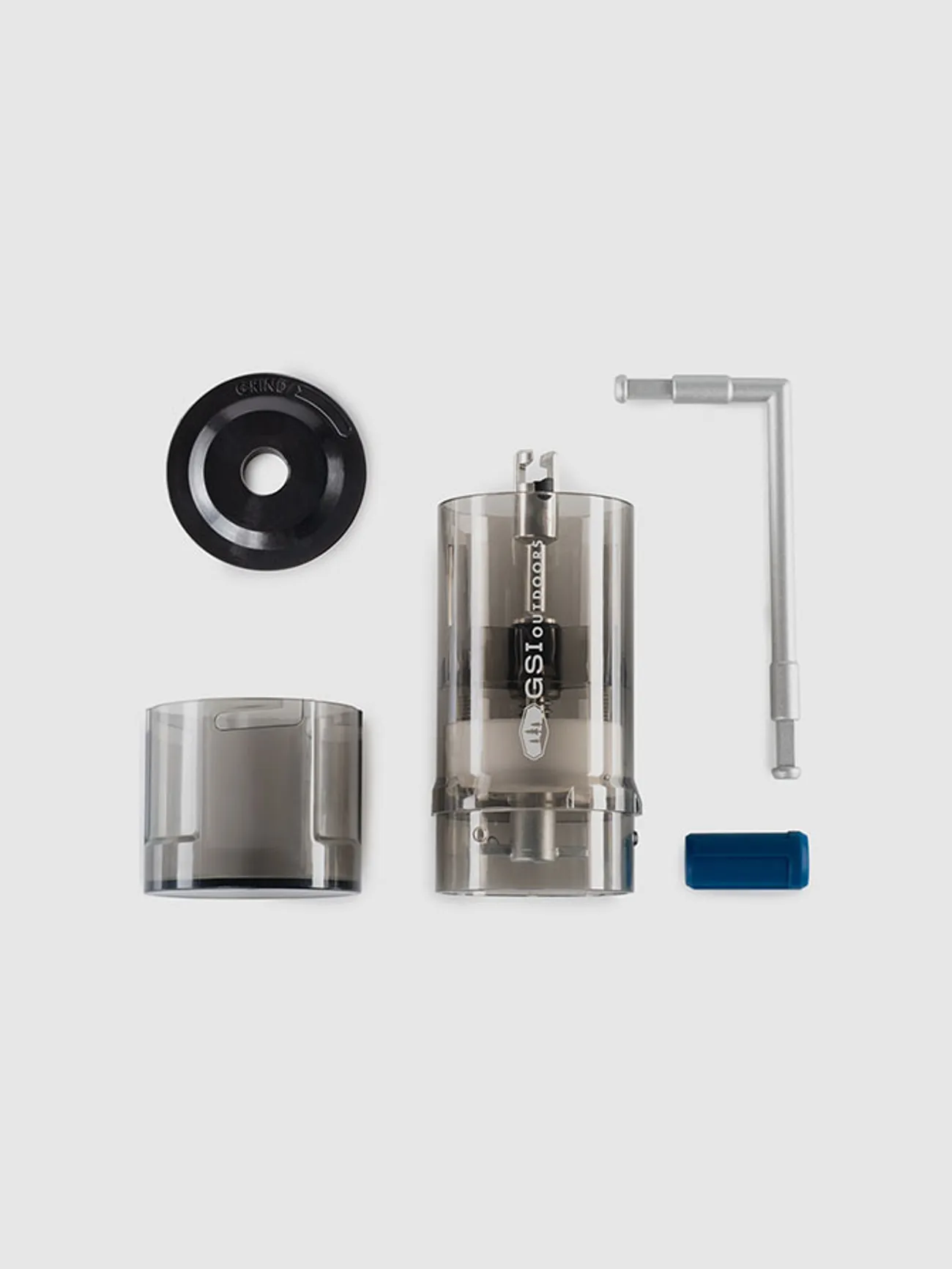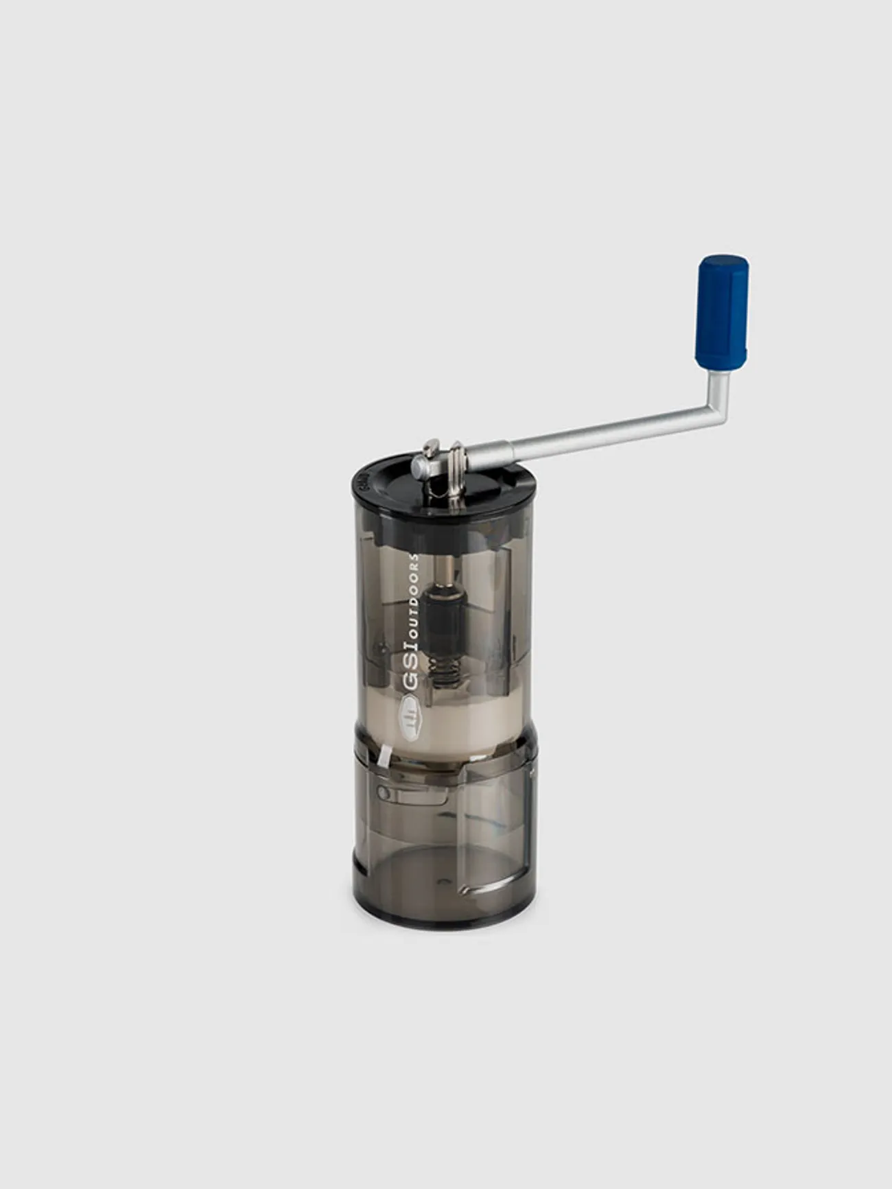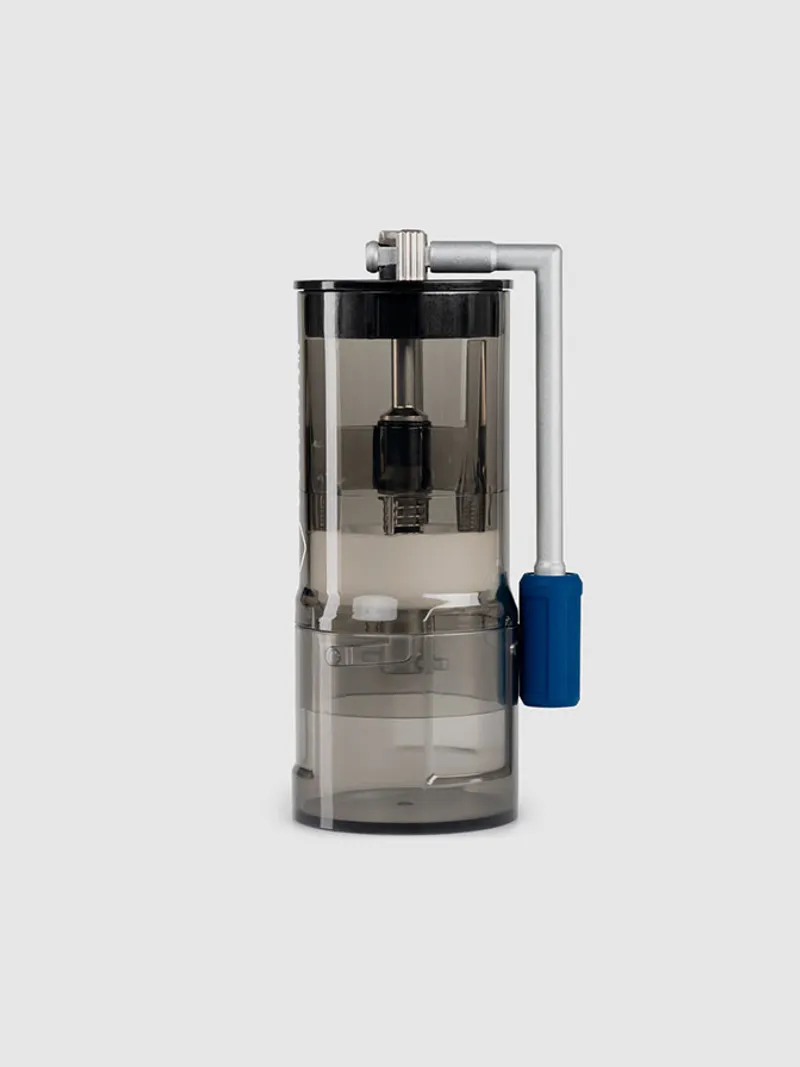 탈착식 손잡이가 있는 네스팅 디자인의 컴팩트한 커피 그라인더.