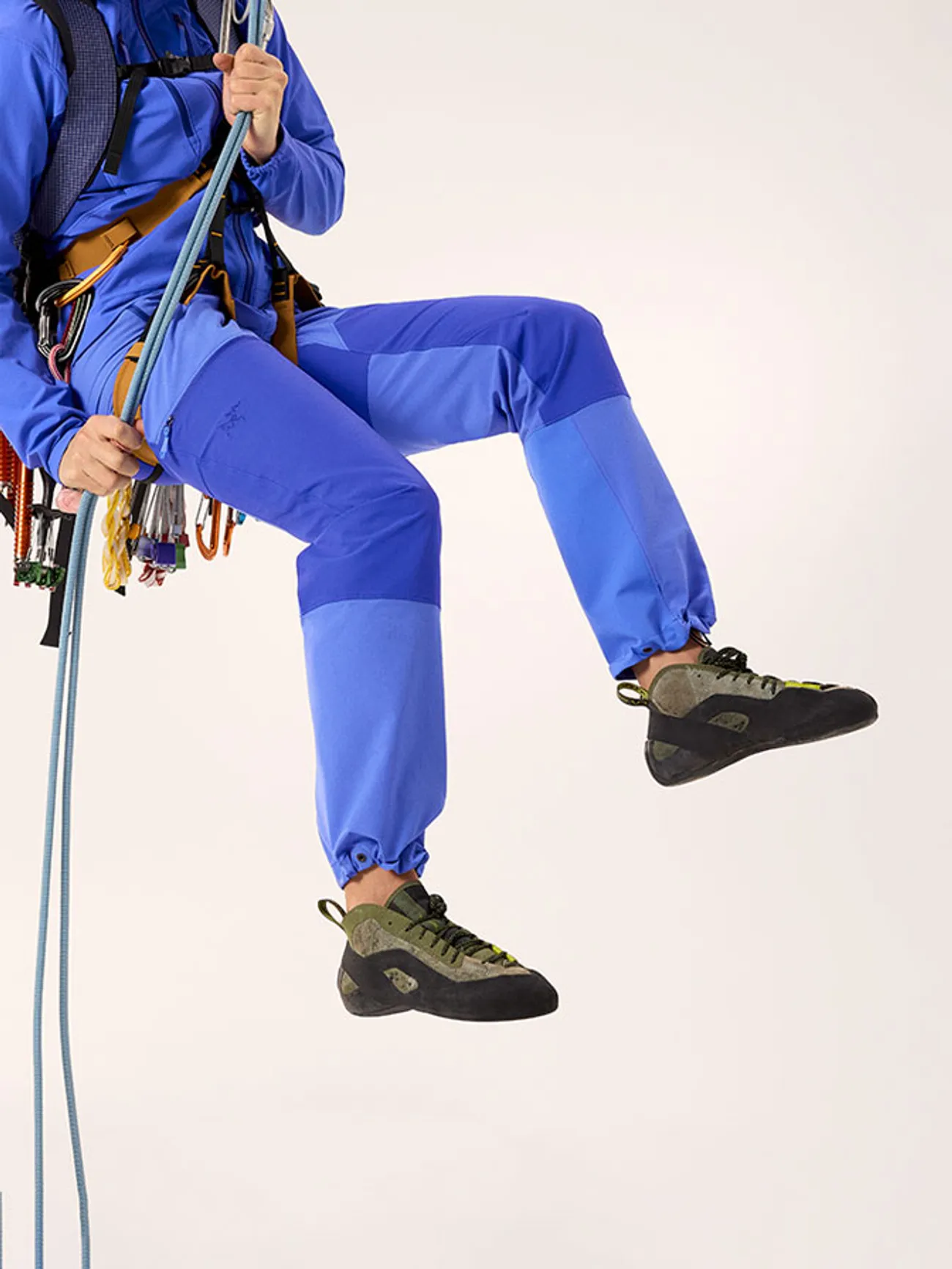 · 거셋 처리된 가랑이로 움직임이 더욱 자유로움,클라이밍에 특화된 입체 패턴으로 움직임이 자유롭고 편안함, 쉬운 레이어링