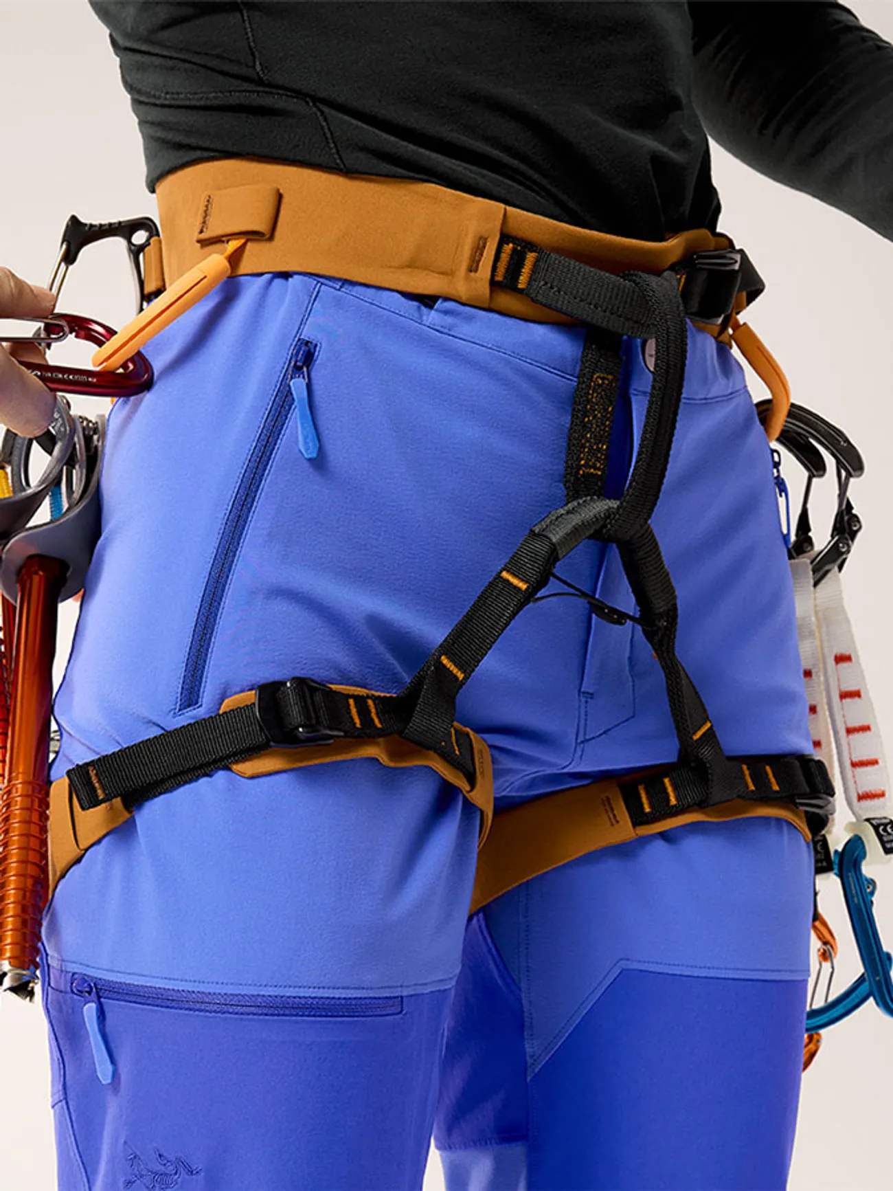 · 조절 가능한 깔끔한 웨빙 허리벨트로 하네스나 팩 아래에서도 안정적인 착용감을 제공
