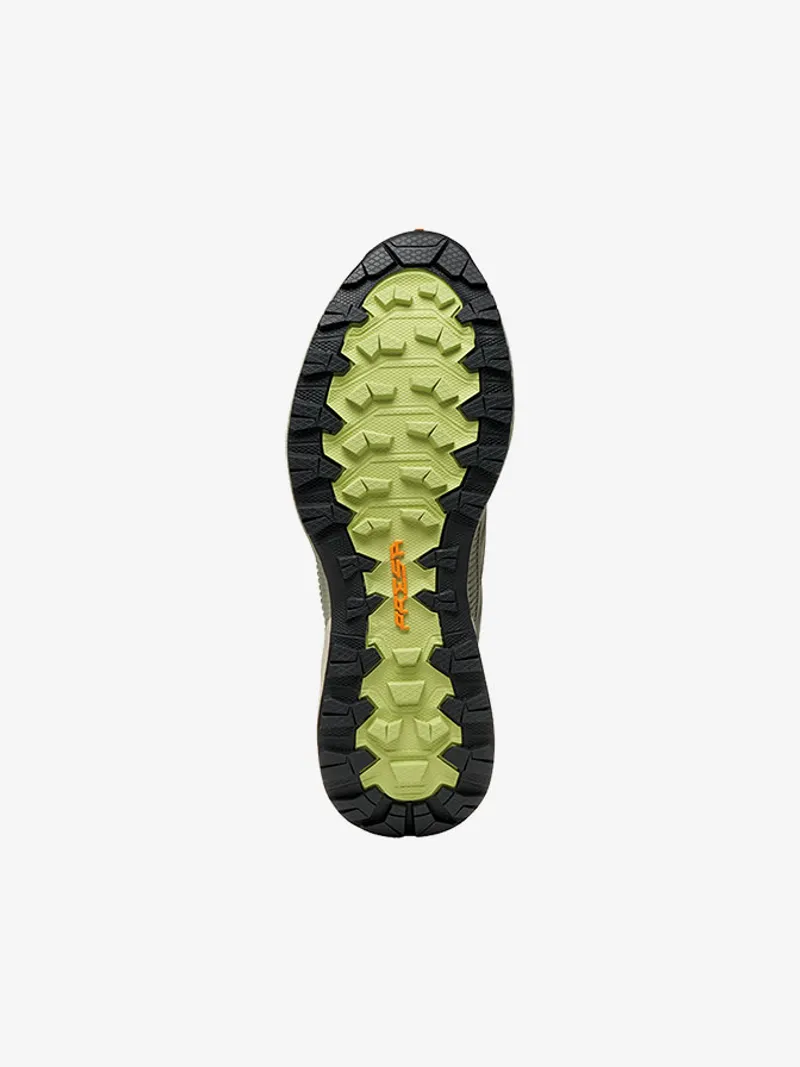 PRESA®는 80년 이상의 기술 아웃솔 디자인 경험을 바탕으로 탄생한 SCARPA의 독점적인 아웃솔 브랜드로, 최고의 솔루션을 제공합니다. 아웃솔과 미드솔에 7개의 내부 충격 흡수 '돔'이 있어 충격 시 압축해 에너지를 흡수하는 것이 특징입니다. 미드솔은 이중밀도 EVA로 경량 충격 흡수력을 추가로 제공하며 미드솔에는 TPU(열성 우레탄)로 제작된 Dynamic Stabilizer Torsion 프레임이 통합되어 있습니다. DST 프레임은 아치 아래를 감싸고 뒤꿈치 양쪽을 따라 뒤로 확장되어 뛰어난 뒷발 안정성과 비틀림 제어를 제공합니다. 아웃솔의 디자인은 4mm와 SuperGum 고무 컴파운드를 통해 신뢰감을 제공하여 마찰력과 내구성이 균형을 이룹니다.